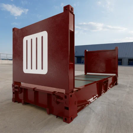 Le container 20 PIEDS FLAT RACK est un container plateforme avec 2 parois amovibles et encastrables, idéal pour transporter des matériaux hors gabarit qui ne rentrent pas dans des containers classiques.